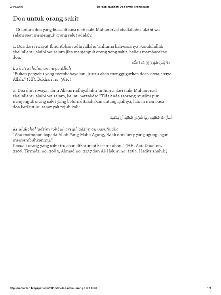 Doa Menjenguk Orang Sakit Arab Terjemahan Portal Ilmu Com