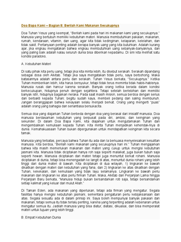 Doa bapa kami bapa kami yang ada di surga dimuliakanlah nama mu datanglah kerajaan mu jadilah kehendak mu di atas bumi seperti di dalam surga berilah kami rejeki pada hari ini dan ampunilah kesalahan kami seperti kamipun mengampuni yang. Seperti kami pun mengampuni yang bersalah kepada kami 13. Microscope yang udah ketik pengertian dari doa bapa kami sangat bermanfaataku bisa lebih mengerti arti dari doa bapa kami juga buat orang lain.