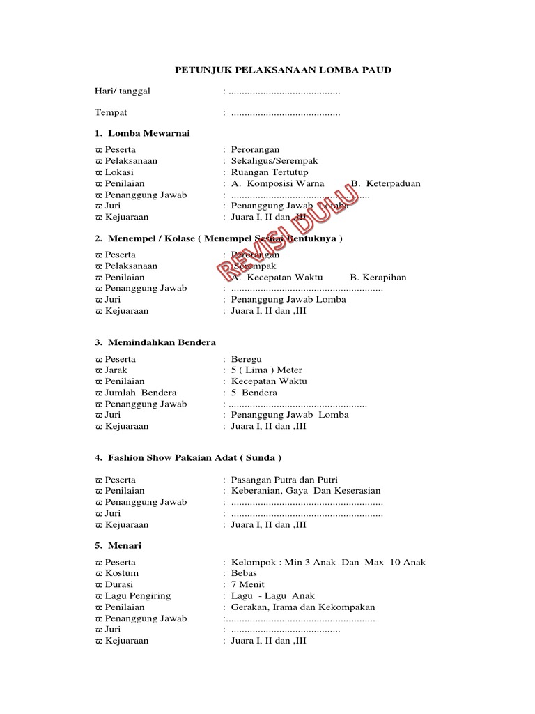 Juknis Lomba Paud Dan Formulir Pendaftaran Docx