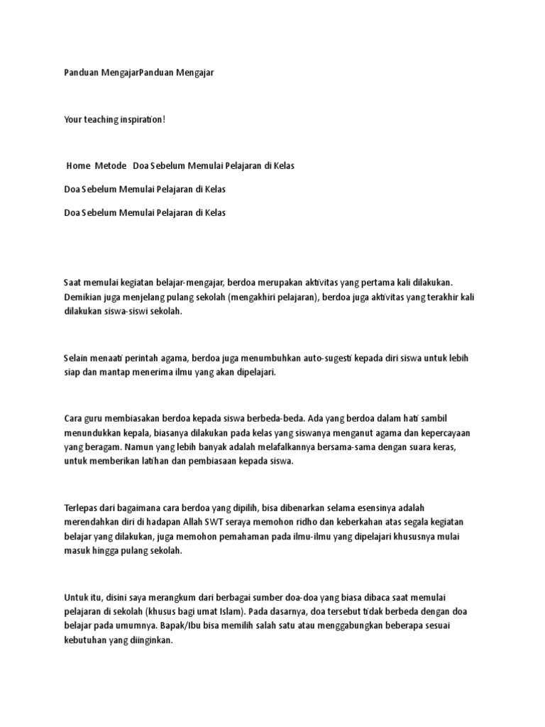 Do A Sebelum Mengajar Madrasah Aliyah Swasta Parit Masp