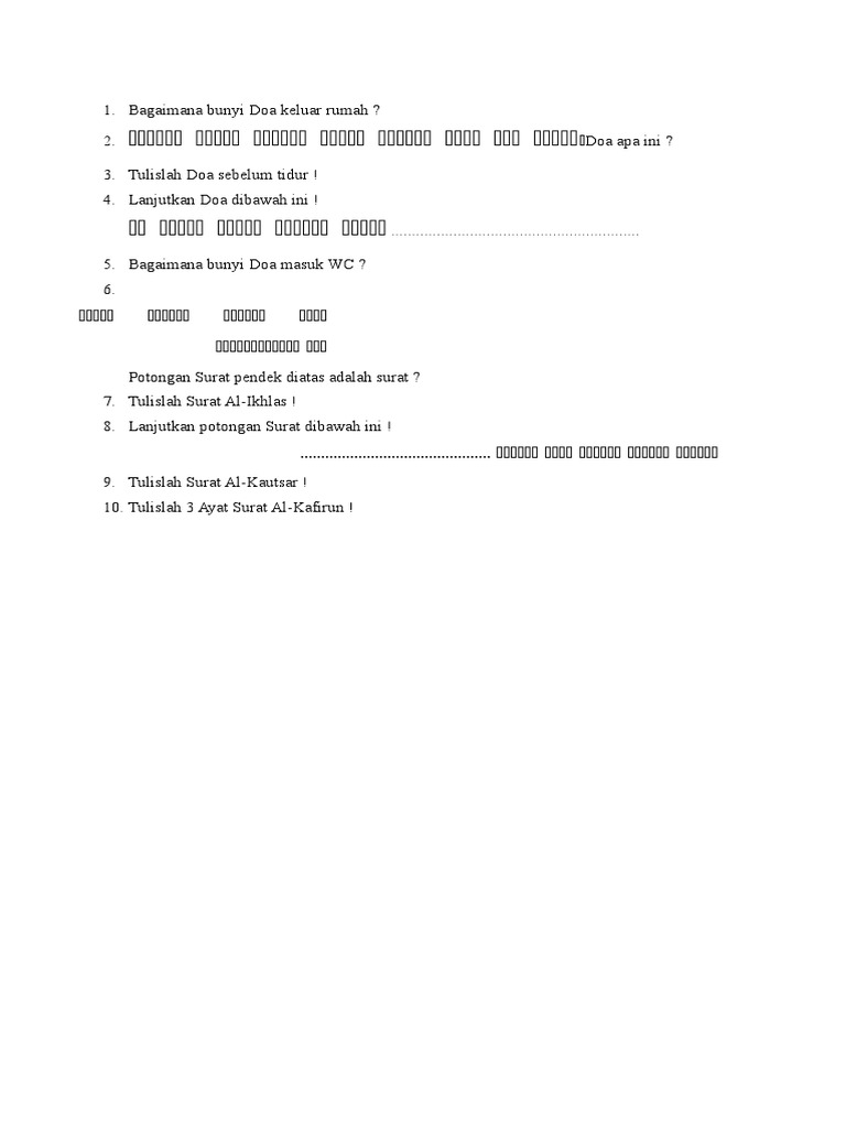 Doa masuk wc dan keluar wc. Doa masuk masjid dan keluar masjid. Doa ketika hujan lebat disertai angin.