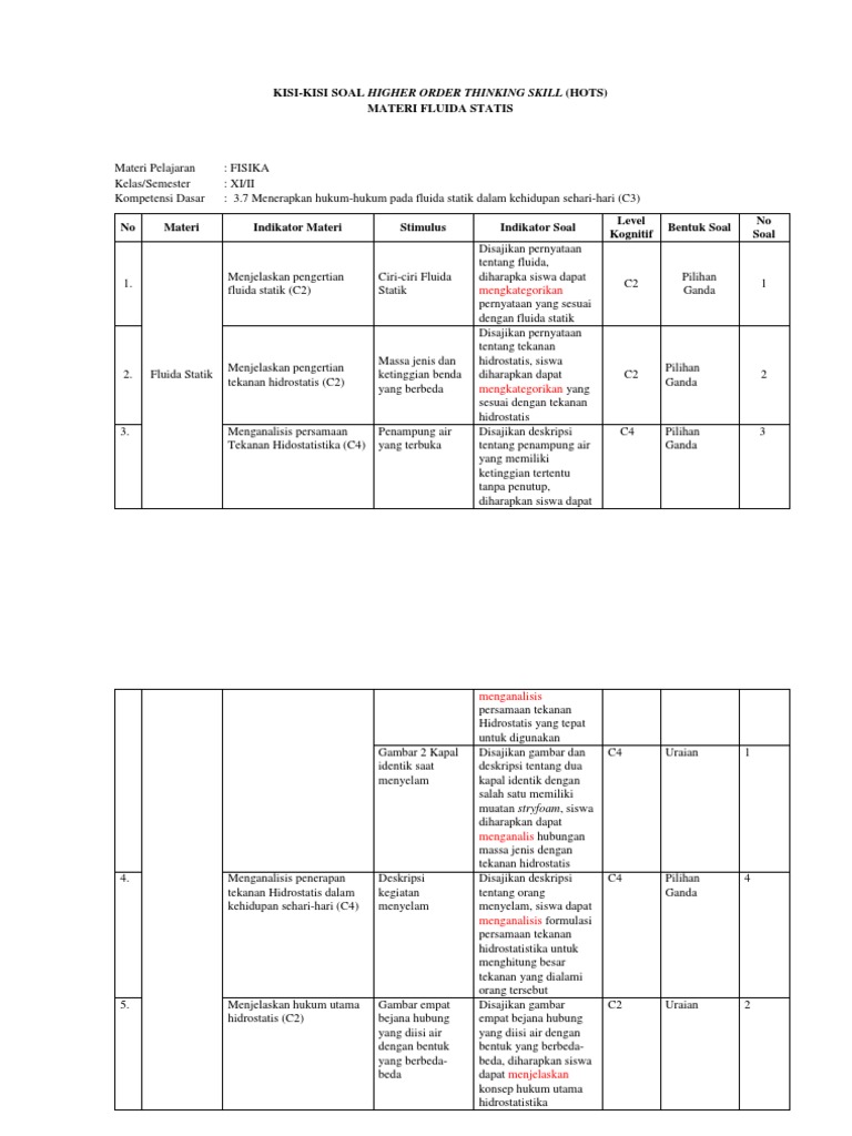 Datenpdf Com Kisi Kisi Soal Fisika Hots Materi Fluida Statis