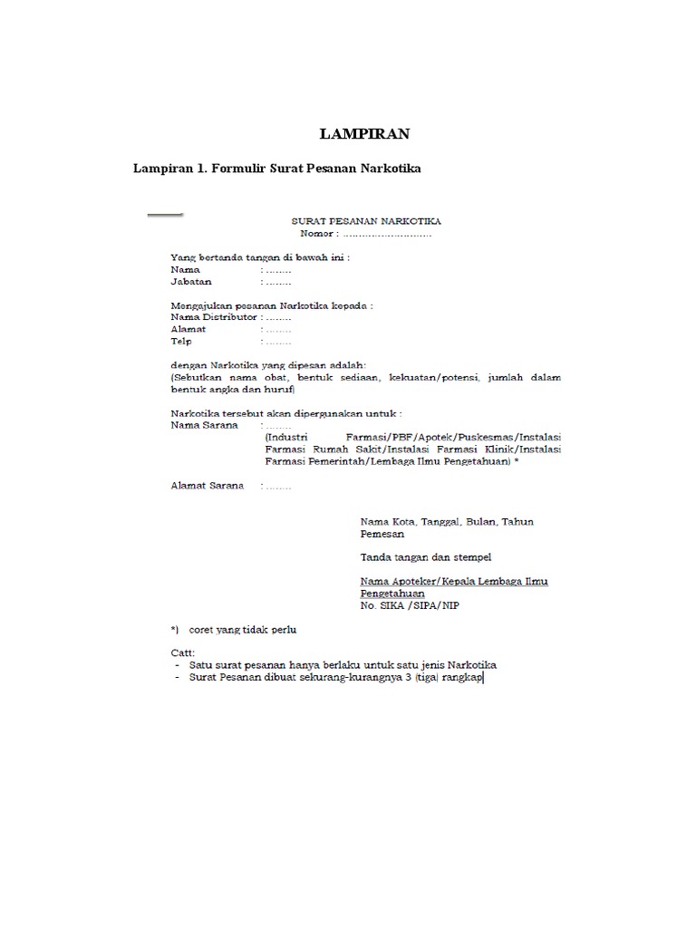Contoh Surat Pesanan Obat Narkotika Dan Psikotropika