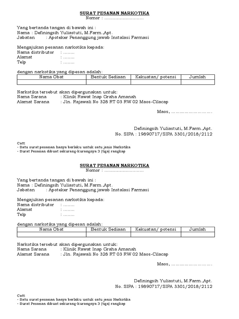 Contoh Surat Pesanan Narkotika Madreview Net