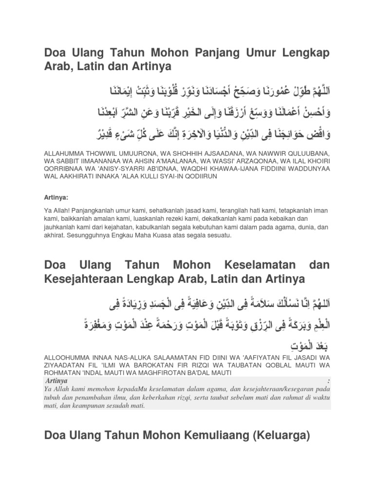 Doa Ulang Tahun Mohon Panjang Umur Lengkap Arab