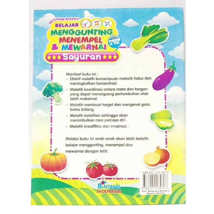 Bintang Indonesia Belajar Menggunting Menempel Mewarnai Sayuran Buku Edukasi Anak