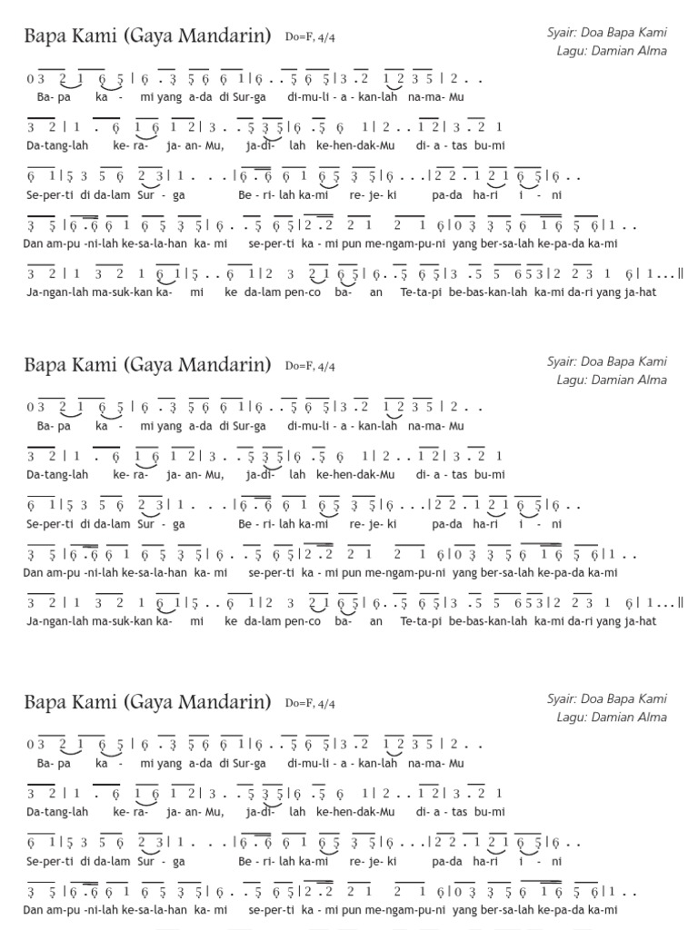 Bapa Kami Teks Lagu Bapa Kami Kaj Keuskupan Agung Jakarta