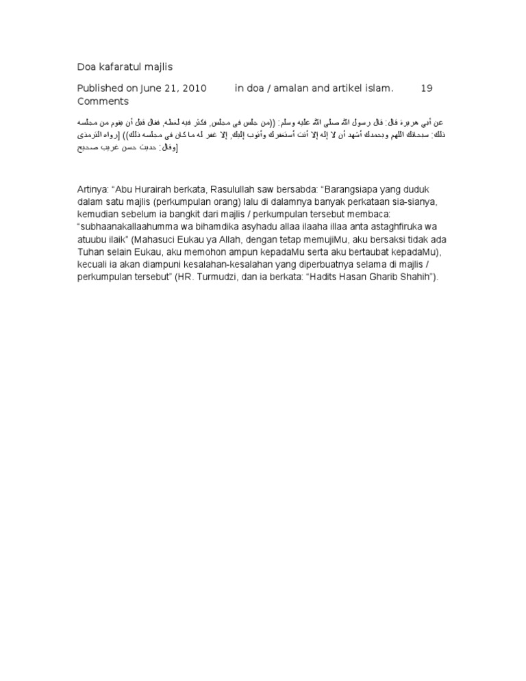 Telecharger Doa Kafaratul Majelis Bahasa Arab Katgersbe