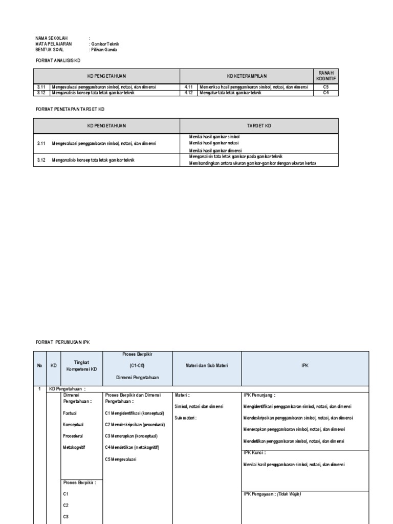 Doc Contoh Cara Merancang Kisi Kisi Soal Materi Sistem