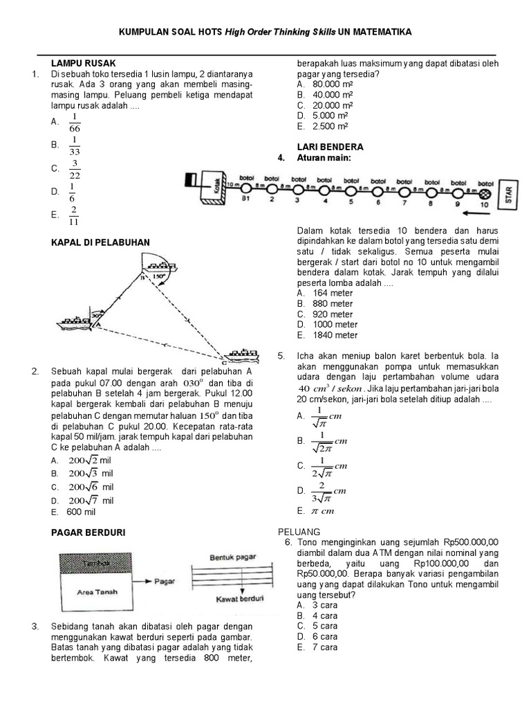 Contoh Soal Matematika Higher Order Thinking Skills Hots