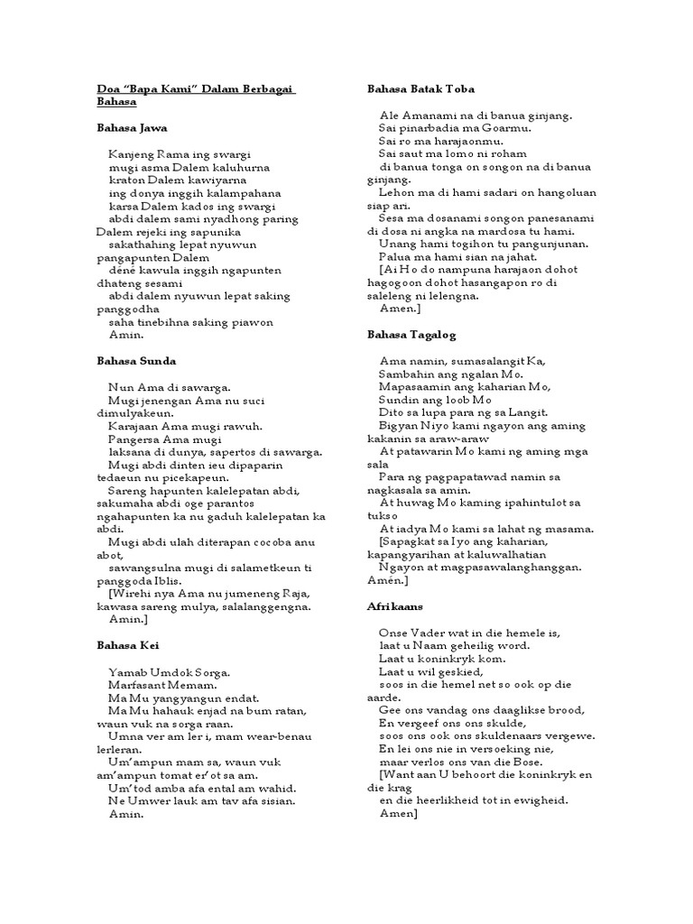 Doa Bapa Kami Dalam Berbagai Bahasa Bisnis Properti Home